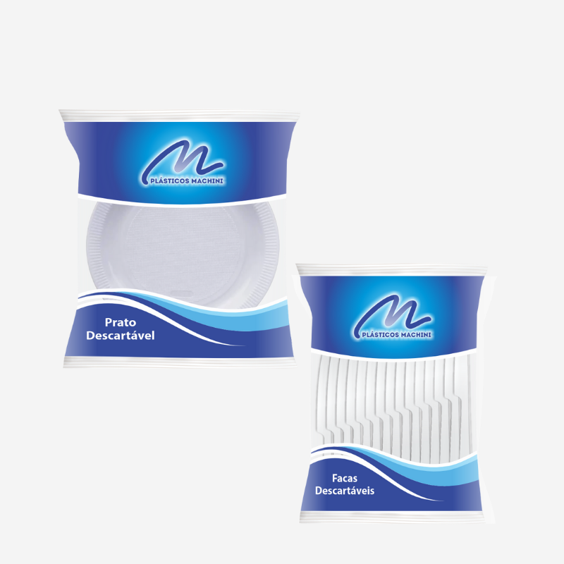 Linha de Embalagens: Pratos, Copos, Talheres e Guardanapos.